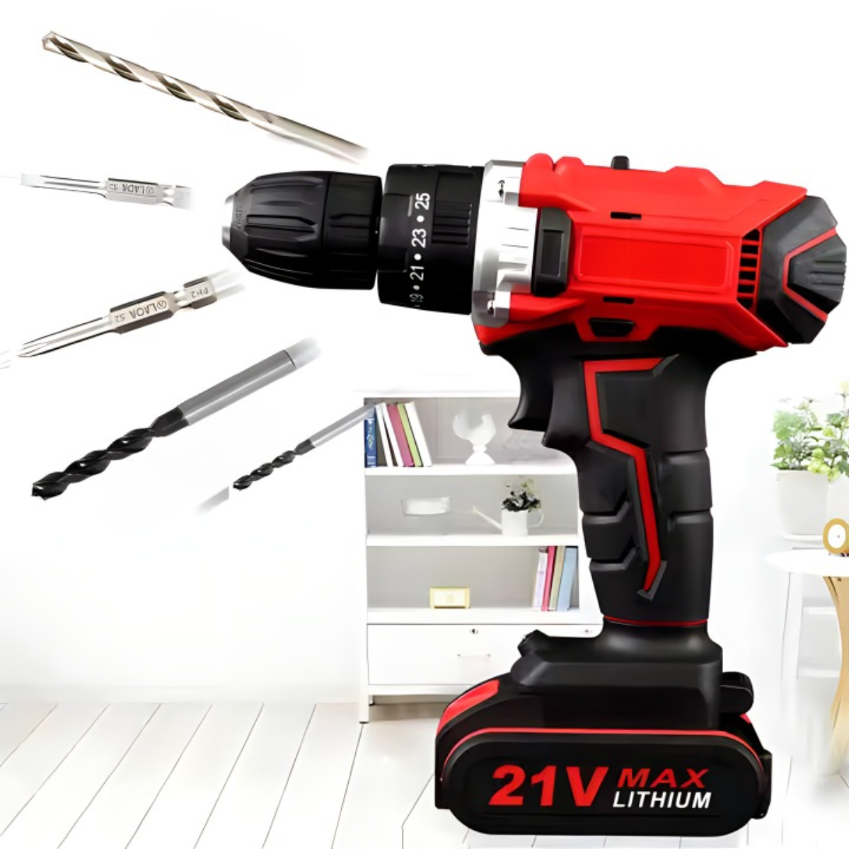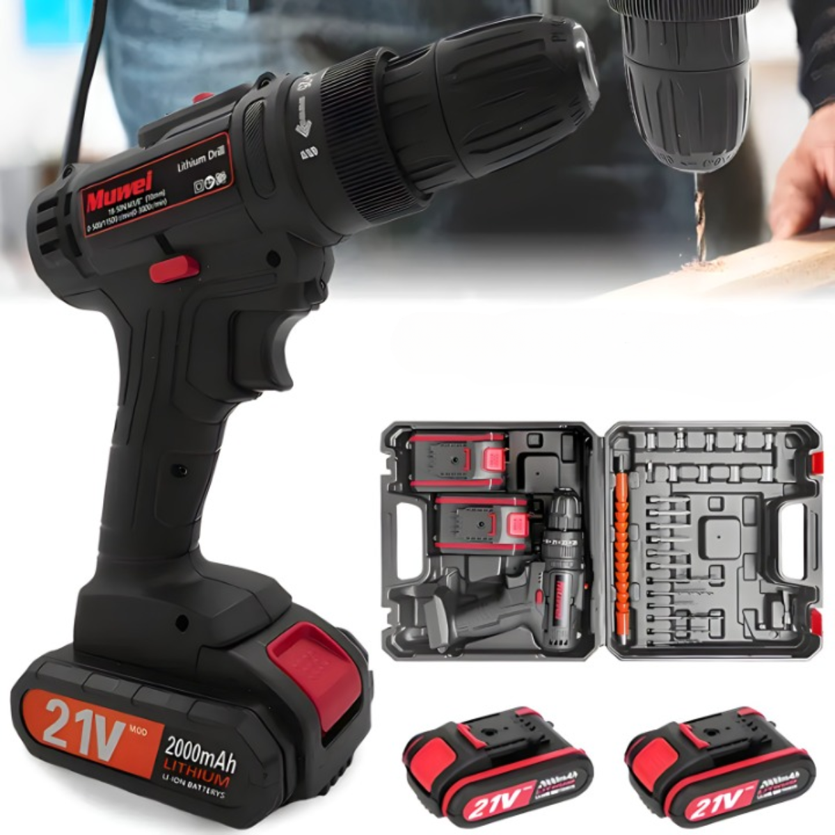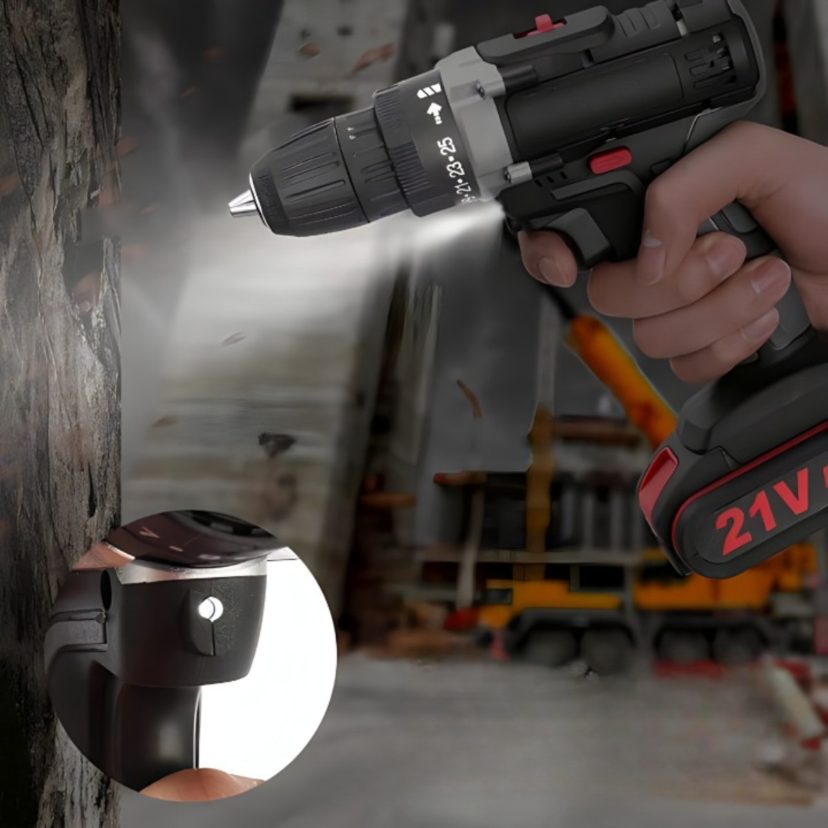 - Snažan motor od 21V: Omogućava efikasno bušenje kroz različite materijale kao što su drvo, metal i beton.