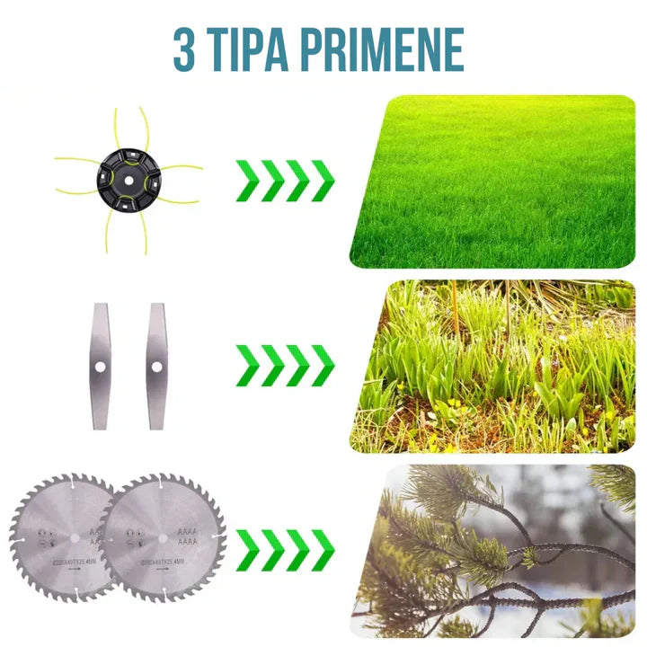 Zahvaljujući snažnom motoru sa do 18.800 obrtaja u minuti, ovaj trimer lako savladava i najtvrdokornije biljke. Nije namenjen samo za travu – idealan je i za korov, šiblje i drugo rastinje.
