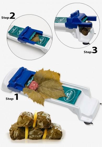Jednostavno ubacite svež list kupusa, vinove loze ili kiselog kupusa u vruću vodu da omekša. Isecite sve nabore i stavite ga u aparat za savijanje sarmi, stavite nadev, povucite ručicu i Vaša sarma je gotova!