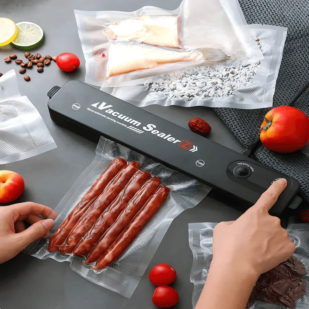 Aparat za vakumiranje održava hranu svežom, i produžava joj rok trajanja za 5x. Možete vakumirati bilo koju vrstu hrane: Meso, voće, povrće i slično. Vakuumiranjem hrane dobijate više prostora u frižideru.