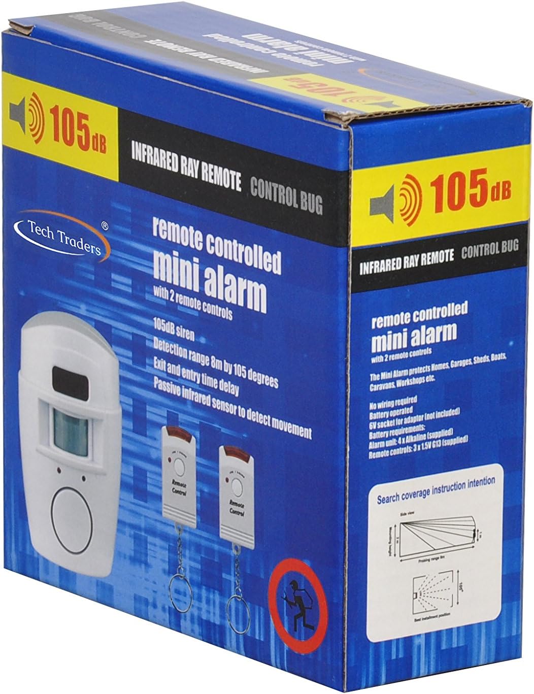 Tech Traders Glasni Alarm od 105 dB je savršeno rešenje za zaštitu vaše imovine od neželjenih uljeza. Ovaj bežični alarm je opremljen sa ugrađenim PIR senzorskim pokretom koji detektuje svaki pokret unutar 110° područja skeniranja.