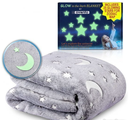 Jedinstven svetleći dizajn – nebeski objekti koji svetle u mraku – zvezde, mesec i planete. Nisu potrebne baterije ili bilo koji izvor napajanja! Pre upotrebe, stavite pokrivač pod jakim svetlom da se napuni.