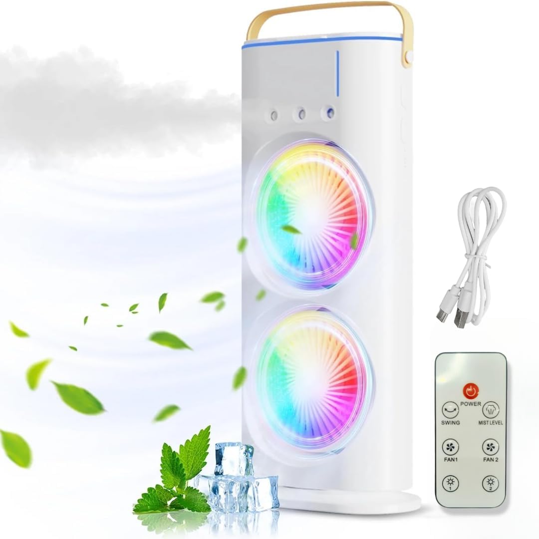 Maksimalna cirkulacija, trenutno osveženje i potpuna kontrola — ovaj napredni ventilator sa dvostrukom glavom i sistemom za hladno prskanje stvoren je da rashladi svaki kutak prostorije i unese svež vazduh tamo gde je najpotrebnije!