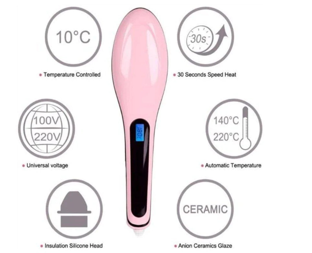 Električna četka za ispravljanje kose sa digitalnim displejom je savršen alat za brzo i efikasno ispravljanje, sušenje i raščešljavanje svih tipova kose. Ova četka omogućava tri puta brže ispravljanje u poređenju sa običnim presama, čineći vašu kosu glatkom i svilenkastom bez oštećenja.