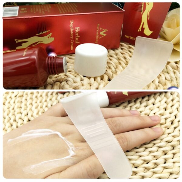 Krema za depilaciju sadrži prirodne biljne ekstrakte, ne šteti, nema iritacije. Može nežno ukloniti dlake, učiniti kožu mekom i neiritirajućom, može efikasno ublažiti nelagodnost kože i istovremeno popraviti i zagladiti kožu.