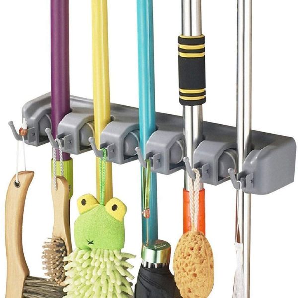 Dovoljno mesta za sve – 5 pozicija za metle i 6 kukica za odlaganje manjih predmeta poput ključeva i sunđerčića.
