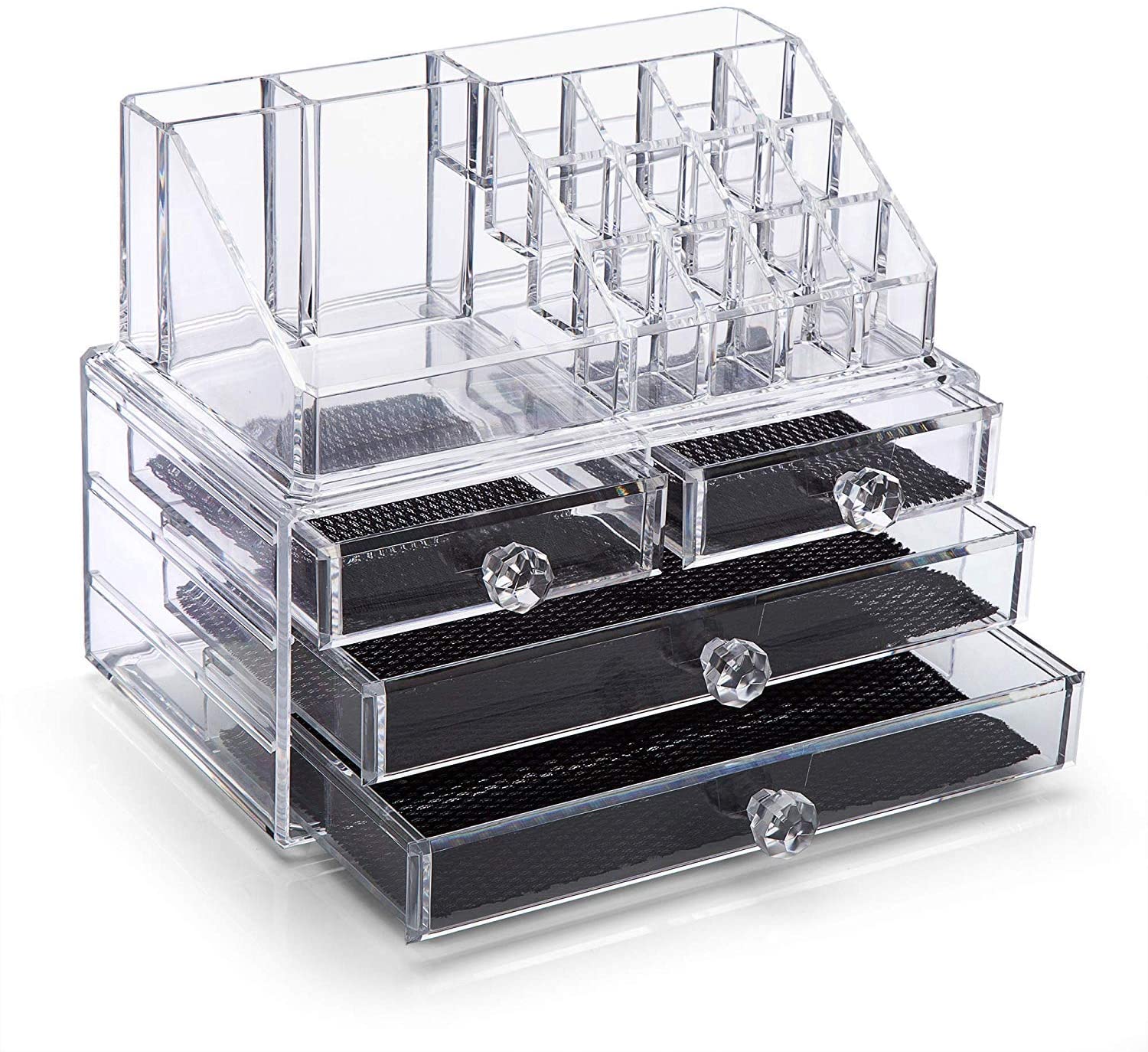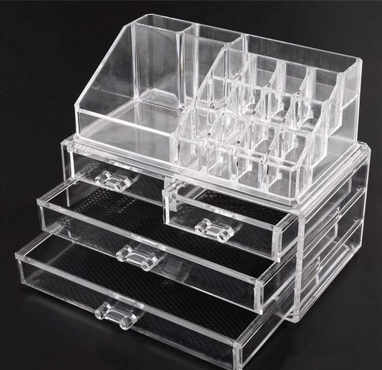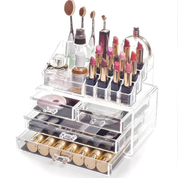Funkcionalnost i stil! Organizator se sastoji od dva dela: deo sa 4 fioke (2 velike i 2 male) i stalak za karmin i ostale sitnice. Ove fioke su potpuno uklonjive i lako se izvlače, omogućavajući vam da pronađete sve što vam treba brzo i jednostavno.