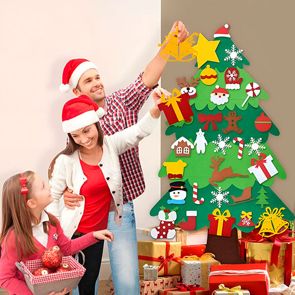 Novogodišnja jelka od filca za zid sa ukrasima je savršeno rešenje! Dizajnirana je za porodice sa decom, domove sa manjkom prostora ili one koji žele nešto drugačije, ali i one koji žele više jelki.