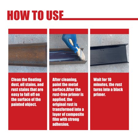 Jednostavna primena! Nema potrebe za komplikovanim pripremama. Samo očistite površinu, nanesite gel i posmatrajte kako rđa nestaje u roku od 10 minuta, ostavljajući crni prajmer.