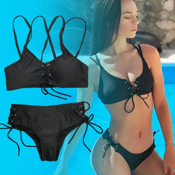 Bikini ima dva seta kaiševa koji pružaju moćan push-up efekat. Vezica nalik na korzet na prednjoj strani, sa metalnim ušicama otpornim na rđu, može se podesiti tako da savršeno odgovara vašem ukusu.