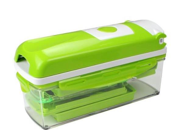 Simply press the lid, and watch as your food passes through the blades and collects in the storage compartment. Cut in 4 or 8 cube sizes with 3 different thicknesses!