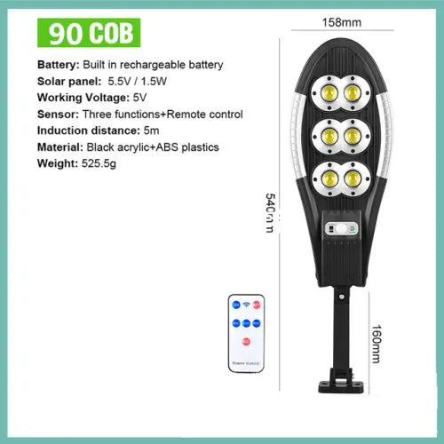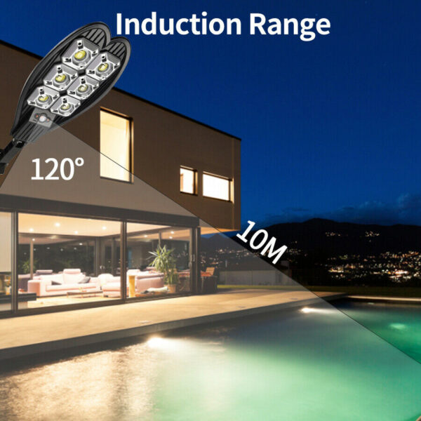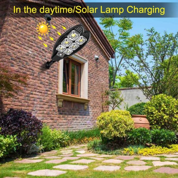 LED solarna lampa pokriva ugao od 120 ° i osvetljava 80 kvadratnih metara. Ugrađeni senzora pokreta omogućuje režim svetla od 100% za 2 sekunde kada je detektovano kretanje. Nakon toga vraća se na način uštede energije od 30% ako ljudi izađu iz otkrivenog područja.
