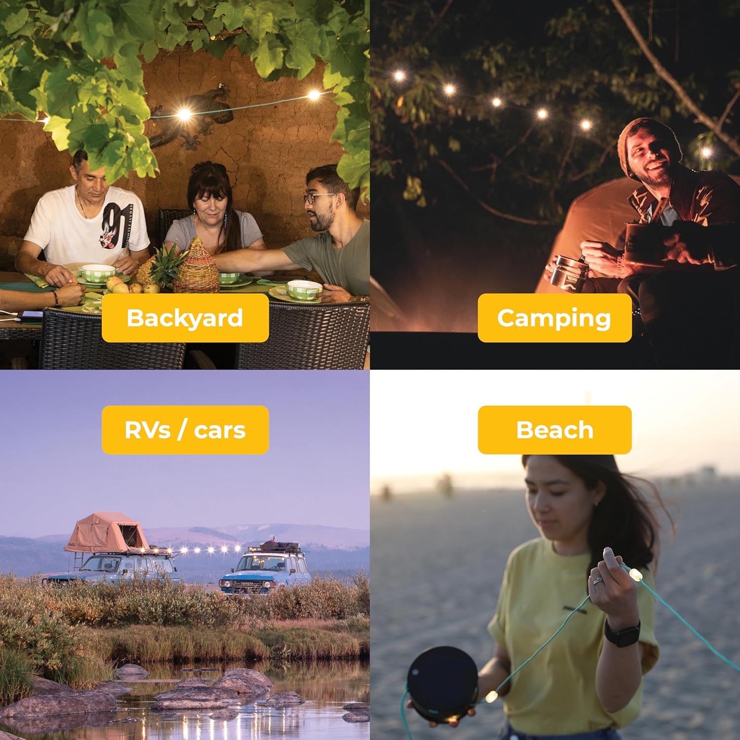 SNAŽNO, PORTABILNO I SPREMNO ZA AVANTURU: Sa svojim kompaktnošću, ova mala svetlost može putovati sa vama na svakoj avanturi. Pored toga, sa kukicama za kačenje i sekundarnim čvrstim najlonskim kablom na osnovnoj jedinici, Luci String se lako može okačiti odozgo.