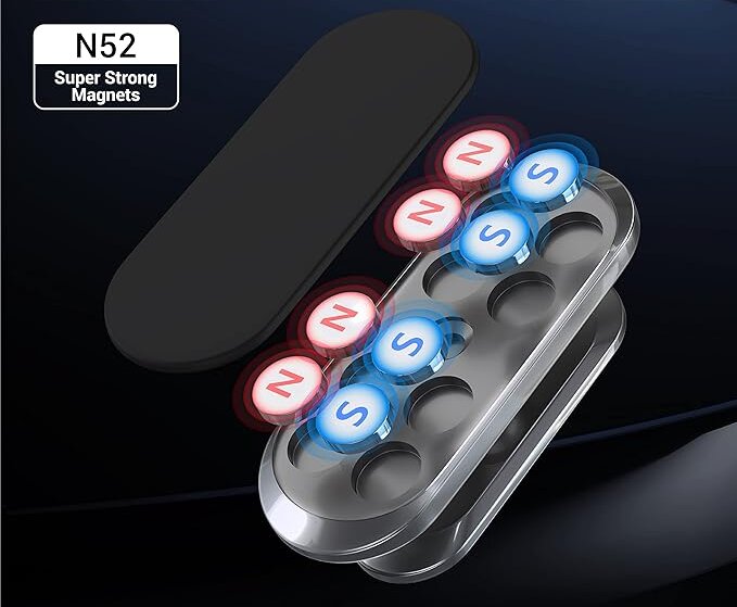 8 N52 super jakih magneta omogućava čvrsto držanje telefona, podržavajući vas tokom vožnje bez ometanja. Ne blokira ventilacione otvore i štedi prostor.