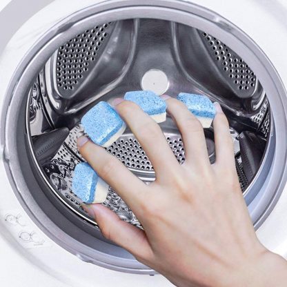 12 komada tablete za čišćenje veš mašine dizajnirane da prodru, rastvore i uklone ostatke koji izazivaju miris u svim mašinama za pranje veša.