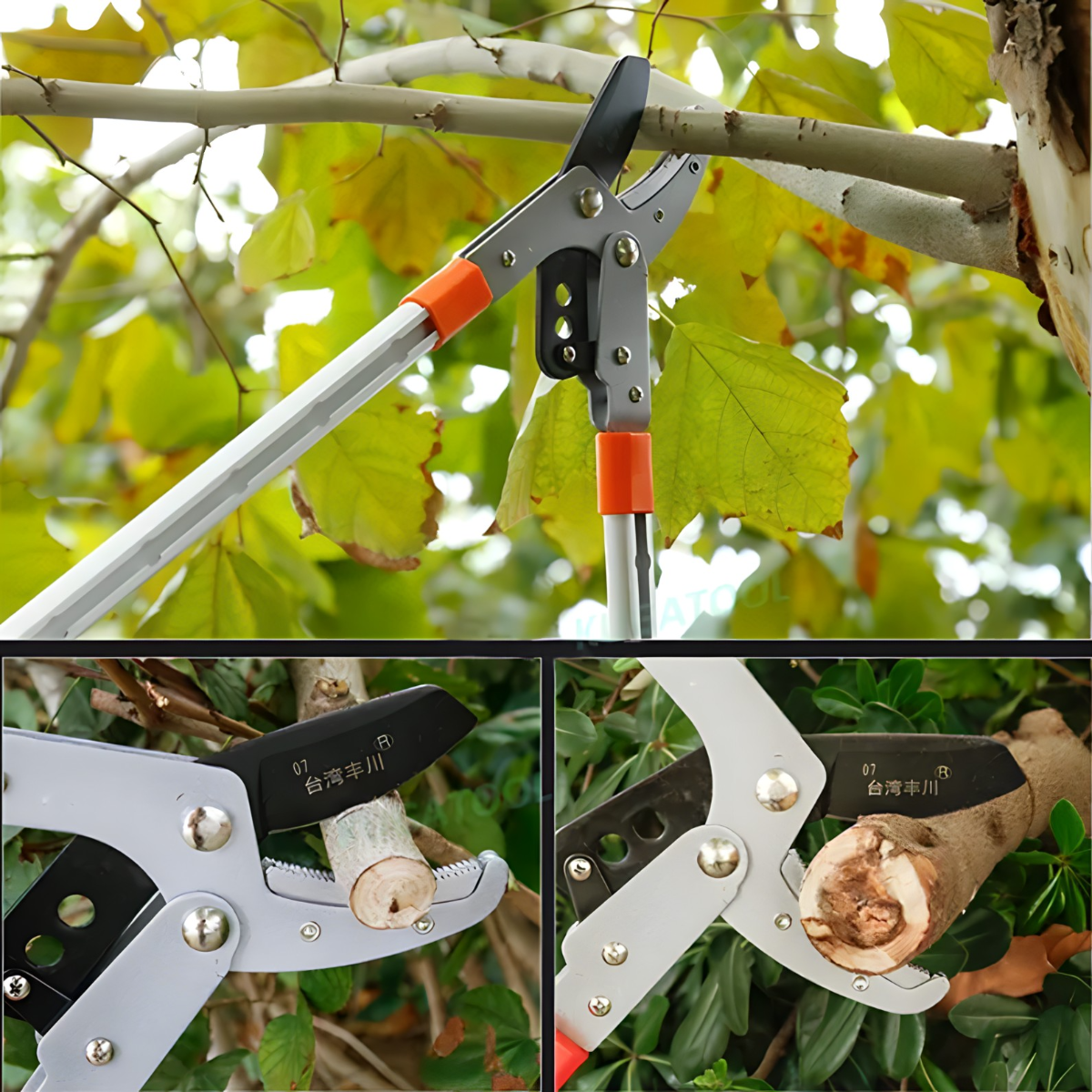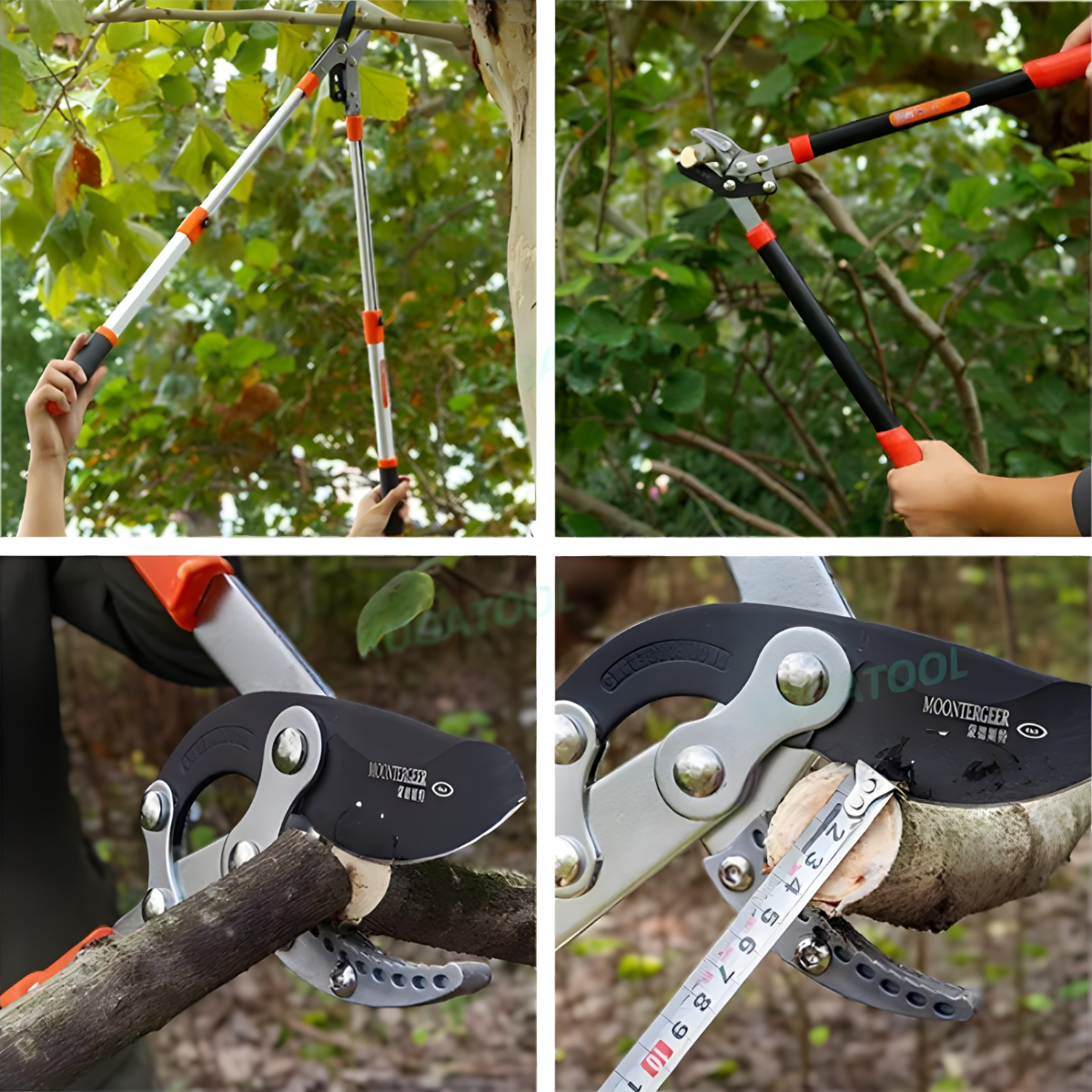Ne morate se popeti na drvo ili merdevine kako biste dohvatili neku višu granu. Pritiskom na dugme, izdužujete ručke, tako da slobodno ostanite tu gde jeste, a makaze će dohvatiti sve što Vi želite.