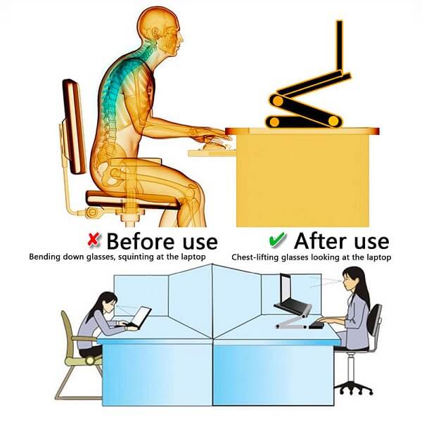 Ovaj sto za laptop izrađen je s otvorima za ventilaciju te se u potpunosti može podesiti kako bi udovoljio željenoj visini, što će vam pomoći i poboljšati držanje tela i osloboditi vas bilo kakvih bolova u leđima.